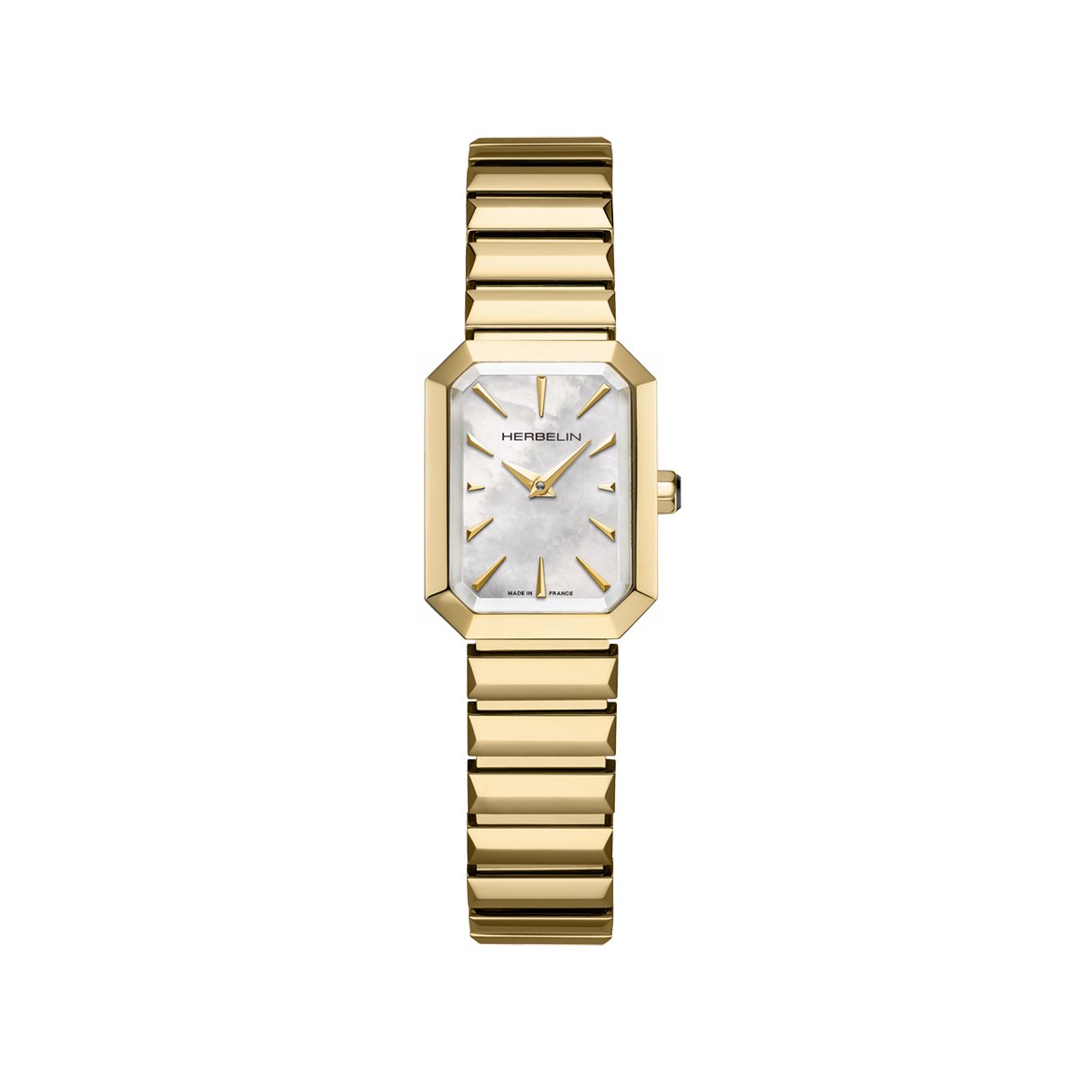 Et elegant smykke av en klokke. Herbelin Octogône kombinerer ikonisk oktagon-formet design med luksuriøse detaljer. Den fasetterte stålkassen i polert gull-PVD reflekterer lyset vakkert, mens perlemorsskiven gir et sofistikert og feminint uttrykk. Med sveitsisk kvartsverk, ripebestandig safirglass og komfortabelt stålarmbånd er dette en klokke som passer like godt til hverdag som til fest.